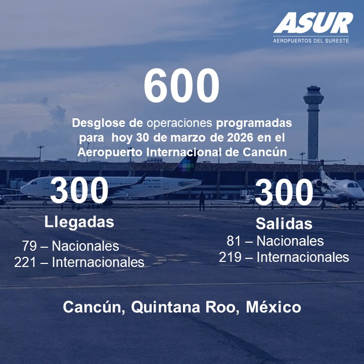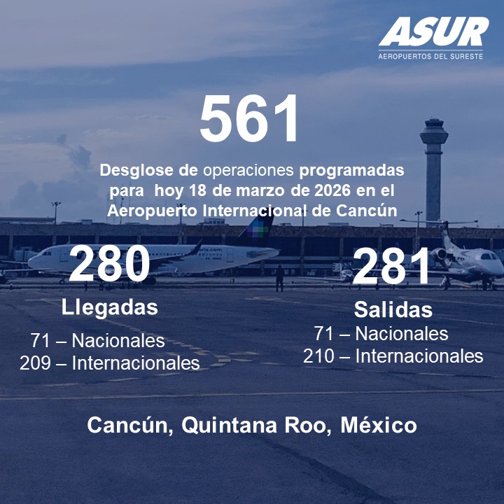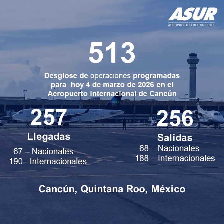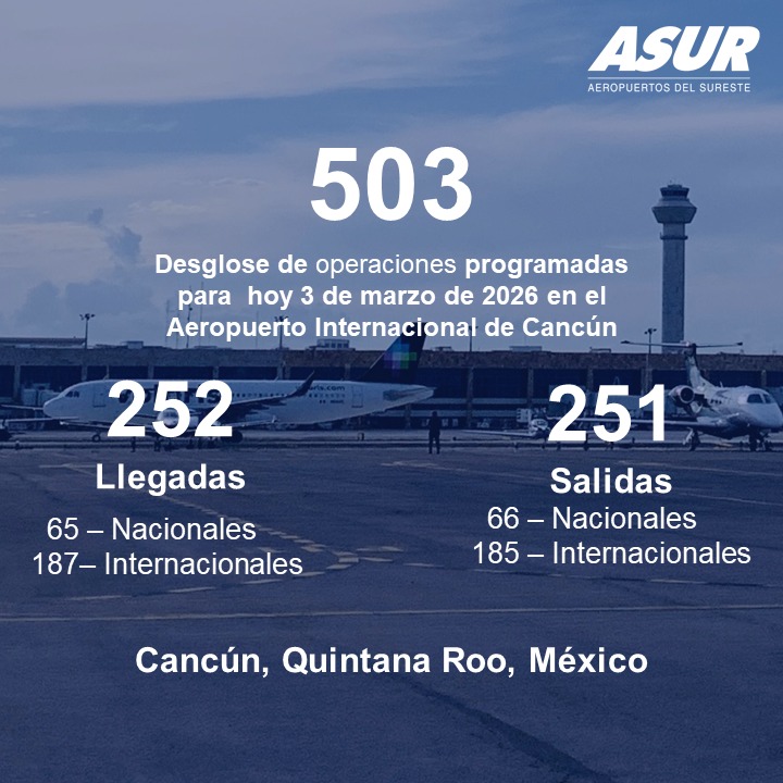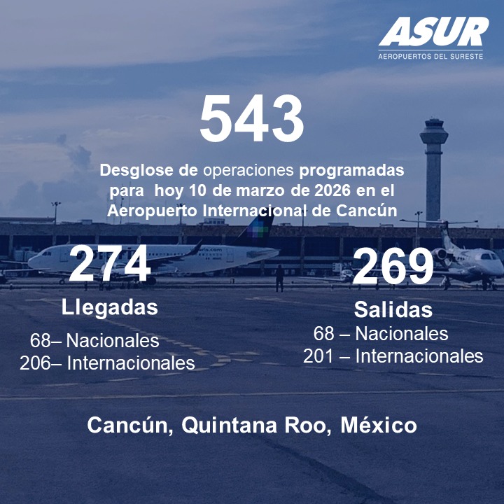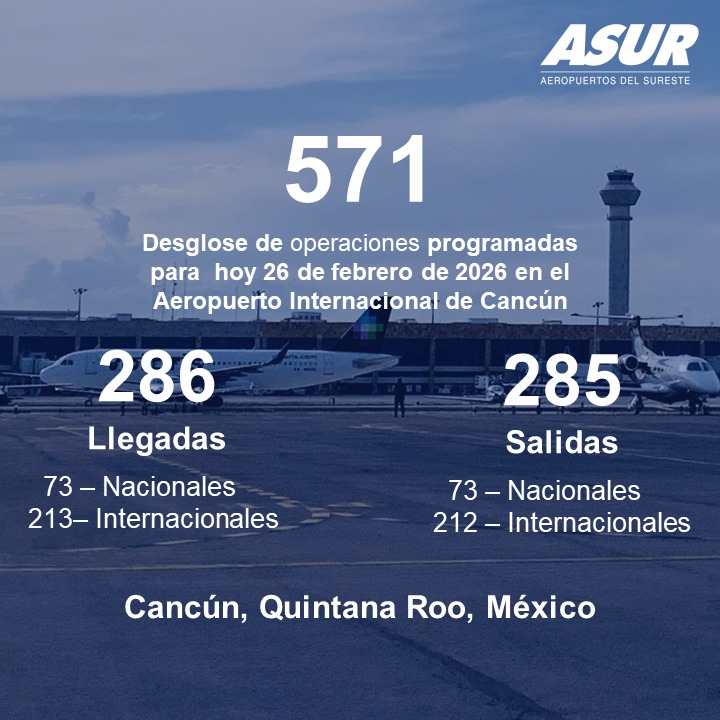 Turismo Quintana Roo coloca 2 aeropuertos en el top 10 con mayor tráfico internacional en México 20/02/2026